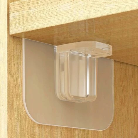 [den, fonds de placard, étagères ou étagères sans perçage, presque invisible à fixer. [placard de cuisine, dans l’unité murale du salon, dans l’étagère à chaussures du sous-sol, dans le siteboard, dans le classeur du bureau et bien d’autres… [peut être utilisé sur toutes les surfaces lisses telles que le carrelage, le bois lisse, le bois verni, le verre, le métal, le marbre, le plastique, le placage et de nombreuses autres surfaces peuvent être facilement fixés par collage, sans perçage ni vissage ! [Fabriqué en plastique acrylique/ABS pour une longue durée de vie. La capacité de charge maximale est de 5 à 6 kg par support de sol d’armoire, avec une surface recommandée optimale si elle est bien nettoyée.