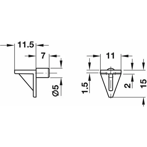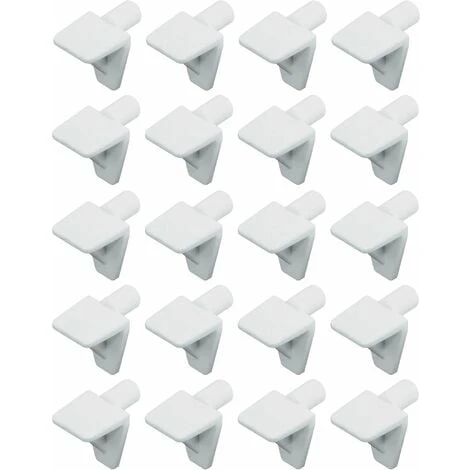 20x Taquet équerre à tenon 5mm ; A encastrer dans diamètre de perçage 5mm ; Matière = Plastique ; Couleur = Blanc ; Longueur de goujon = 7mm ; Capacité de charge = 75kg (selon DIN EN 1727:1998-06)