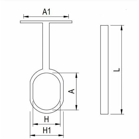 2x Support de tringle fermé ovale ; Dimension intérieure de l’ovale (H x A) = 15,5 x 30,5mm ; Epaisseur extérieure de l’ovale H1 = 20mm ; Entraxe A1 = 35mm ; Episseur A2 = 6mm ; Longueur totale L = 70mm ; Matière = Métal chromé