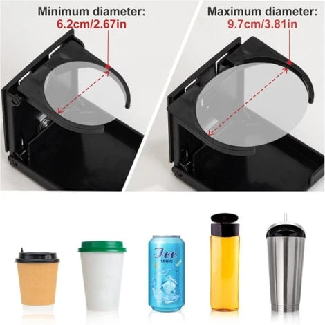 [Facile à utiliser] Pour le placement de boissons (gobelets, canettes, etc.), le dispositif de rangement pour véhicule Thlevel peut accueillir des gobelets ou des canettes d’un diamètre maximum de 75 mm.[Haute qualité] Fabriqué en plastique ABS épais, complètement étanche et facile à nettoyer. Peut être utilisé pendant longtemps.[Facile à installer] Installer sur n’importe quelle surface verticale plane. Comprend des clips de montage en acier inoxydable et du ruban adhésif double face.[Champ d’application] Il est couramment utilisé dans les automobiles, les véhicules récréatifs, les navires, les yachts, etc., et peut également être installé sur des fauteuils roulants, des chariots, etc.[Petite taille] Plié à plat, il ne dépasse que de 28 mm lorsqu’il est fermé et de seulement 99 mm lorsqu’il est ouvert. Il peut économiser plus d’espace.
