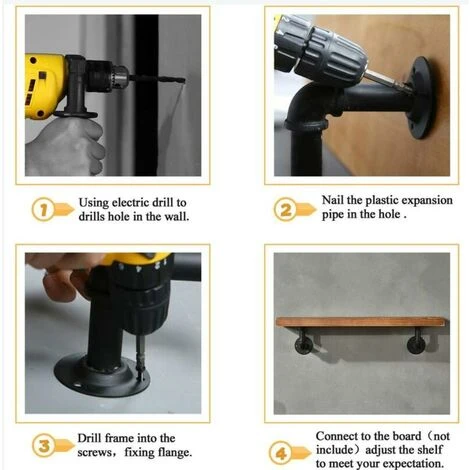 L’emballage comprend :4PCS Support Étagère Mural 15 X 8 cm Rétro en Métal Équerre de Tuyau Industriel Bride De Plancher Shelf Brackets pour Déco Salon/Chambre/Salle d’étude