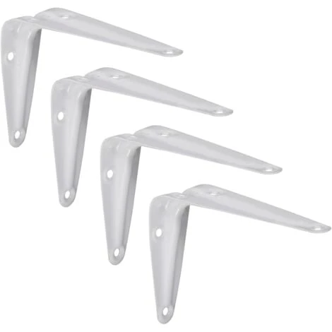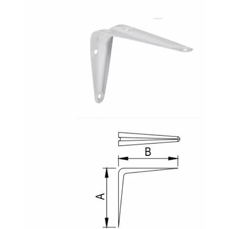 4x Equerre console rigide ; Matière = Acier ; Couleur = Blanc ; Dimension A = 100mm ; Dimension B = 125mm ; Capacité de charge (par paire) = 40kg ; A visser (vis non incluses)