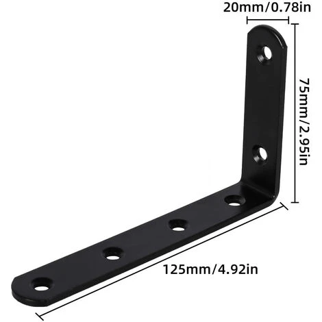 Taille du produit : brackets etagere sont tous à 90 degrés et la taille du support est de 125x75x3 mm (son épaisseur est de 3 mm). Le produit est de taille moyenne et peut être utilisé de différentes manières.