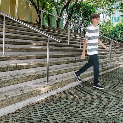 – L’inclinaison de la main courante est au choix, peut être montée horizontalement ou en pente. Facile à installer, accessoires de montage inclus. (Support anneau à billes, embouts en acier inoxydable, garde-corps en acier inoxydable, rampe d’escalade).