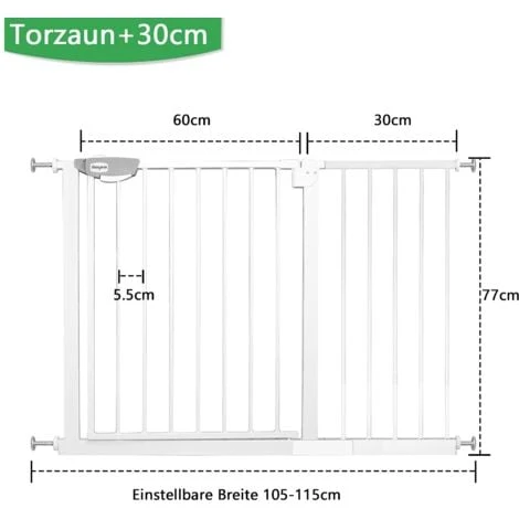 Rail de porte + cadre d’extension de 30 cm (avec fente pour carte): 105-115 cm