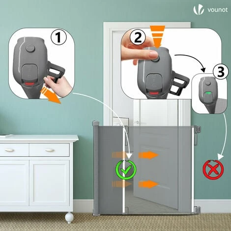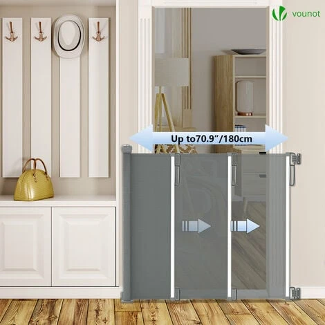 - Le double verrouillage empêche le bébé d’ouvrir la barrière et les animaux domestiques de passer par le bas.