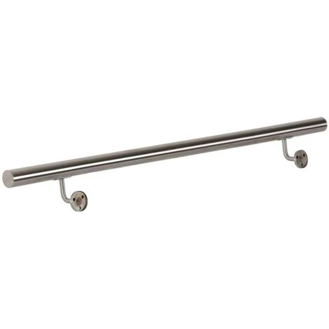 Le set comporte deux fixations murales ainsi que le matériel de montage nécessaire. La rampe est faite en inox brossé et est ainsi résistante: vous pouvez l’utiliser aussi bien à l’intérieur qu’à l’extérieur ou dans les pièces humides comme la cuisine ou la salle de bain, mais aussi devant votre porte d’entrée ou dans votre jardin.