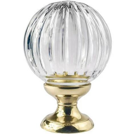 Boule de rampe cristal soleil idéale pour votre rampe d’escalier en cristal ciselé et façonné à la main diamètre 100 mm hauteur 140 mm socle en laiton massif.