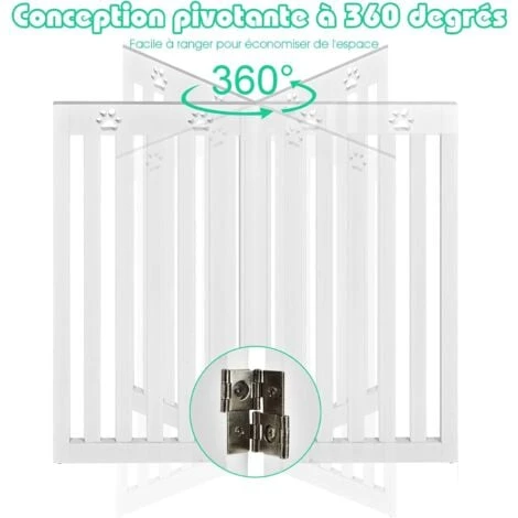 - 【Pliable et extensible】Dotée de charnières métalliques résistantes et qui pivotent à 360°, la barrière en bois peut être agencée en forme de Z ou de U, idéale pour être installée dans différents espaces. En outre, elle est pliable, ce qui permet de la déplacer ou de la ranger facilement.