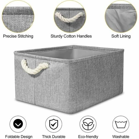 Accessoires haut de gamme – ; La boîte de rangement est faite de tissu écologique épaissi avec un cadre en tige de métal et deux poignées en corde de coton. S’intègre facilement dans tous les placards, étagères, facile à transporter par la poignée. La couleur neutre correspond à de nombreux styles de maison et garde votre maison belle et bien rangée.