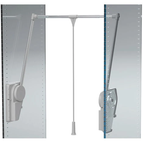 Charge réglable de 14 à 20 kg. Fonctionne sur vérin hydraulique (sans huile). Armature en PVC. Tube en acier chromé. Fixation murale. Largeur réglable de 750 à 1150 mm.