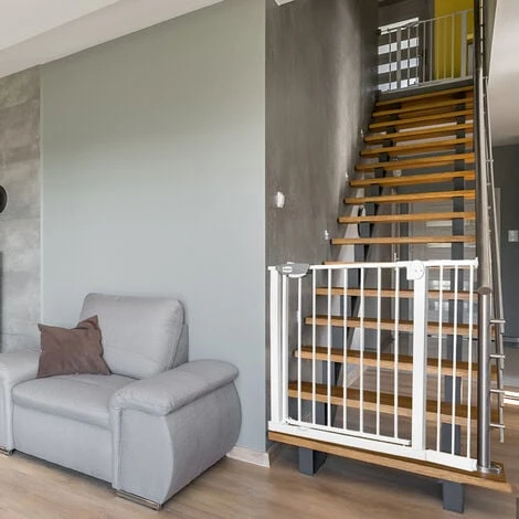 Avec ce protège-porte, vous êtes parfaitement équipé pour protéger votre enfant des situations dangereuses à la maison. Vous pouvez monter la grille de protection rapidement et facilement sur la porte, dans le couloir ou devant les escaliers, sans vis ni trous. Grâce au système de verrouillage de porte à double sécurité, la porte est encore plus sûre et protégée contre l’ouverture par les bébés et les jeunes enfants.