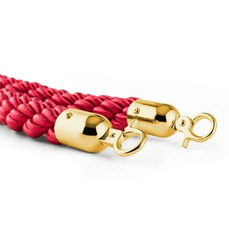 Allongez ou ramifiez votre système de délimitation avec le cordon de séparation Golden Cord de oneConcept spécialement conçu pour le système de guidage de personnes Golden Gate (article 10028501). Ce cordon à trois fils élégant en rouge métallique délimite les espaces efficacement et permet de contrôler les flux de visiteurs. Luxurieux, le Golden Cord apporte une barrière supplémentaire de 1,5 m et s’intègre aisément dans un système préexistant grâce à ses connecteurs en forme de mousqueton doré.