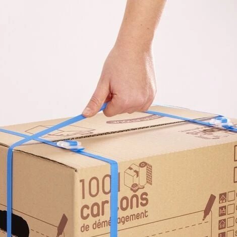 Ce kit de cerclage comprend 100 m de cerclins haute résistance de 200 kg et 50 boucles plastique à serrage automatique sans outils. Permet de solidifier vos cartons de rangement et d’en empêcher l’ouverture. Vous pouvez aussi réaliser une poignée pour faciliter le transport de votre carton de déménagement ou de vos objets.