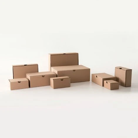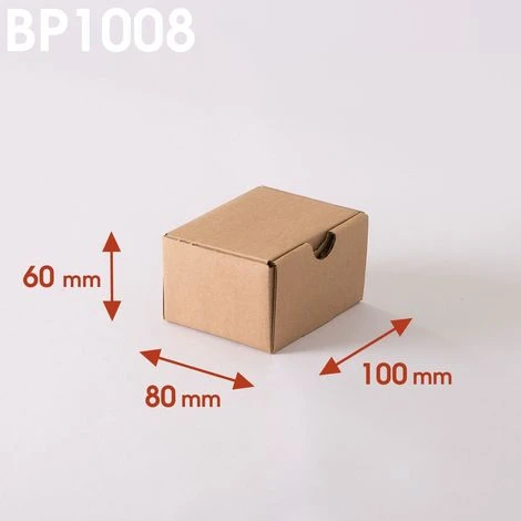 Boîte carton avec couvercle charnière et languette d’ouverture.