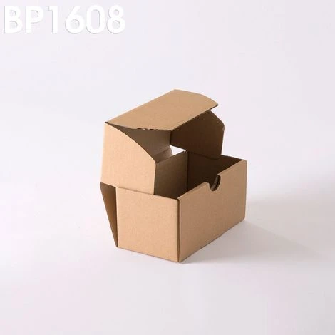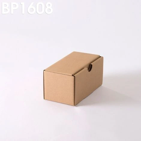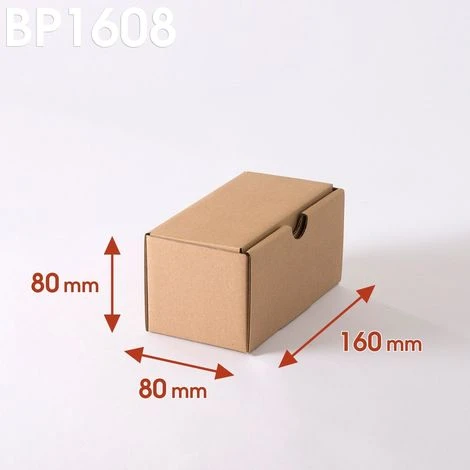 Boîte carton avec couvercle charnière et languette d’ouverture.
