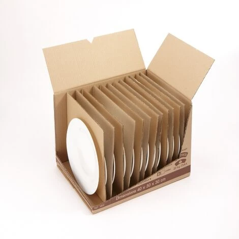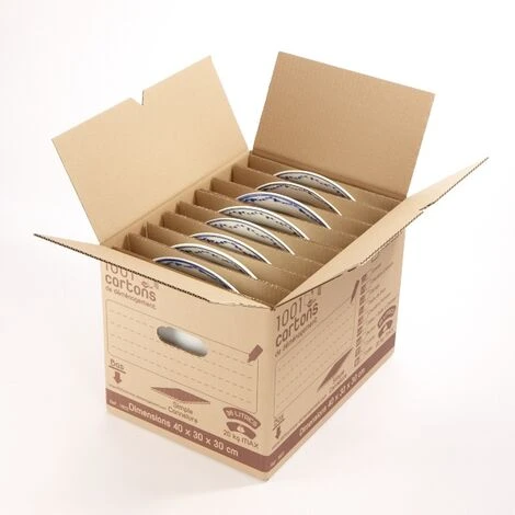 Notre pack de carton assiettes est idéal pour ranger et emballer rapidement et en toute sécurité (contre la casse et les coups) vos assiettes de toute forme et de diamètre maxi 29cm. Ce pack est vendu avec son carton de déménagement special 40 x 30 x 30cm et son jeu de croisillon assiettes 2 poignées de transport double renfort ergonomique Zone de marquage du contenu et de la piece pour connaitre l’endroit où ranger le carton.