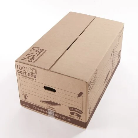 Carton de déménagement 160 L renforcé double cannelure Epaisseur et rigidité superieures à un carton standard simple cannelure. Il est ideal pour vos objets lourds et / ou fragiles. Il résiste bien mieux à l’écrasement. Ideal pour le stockage longue durée Zone de marquage du contenu et de la piece pour connaitre l’endroit où ranger le carton double cannelure. Dimension : 80 x 50 x 40 cm Double cannelure : 4 + 3 mm = 7 mm Charge maxi : 40 kg