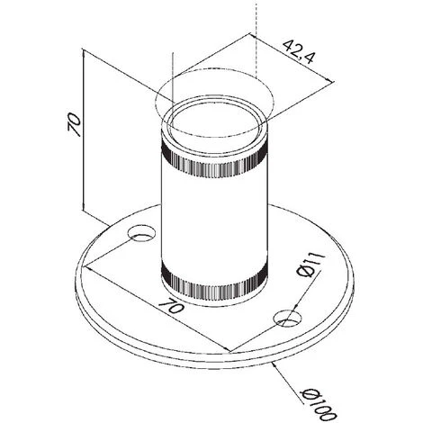 Parce que la sécurité, la durabilité et le design de votre balustrade sont essentielles, optez pour le système d’ancrage de poteaux le plus performant. À savoir, cette platine d’ancrage au sol à manchonner de diamètre 100 mm. Ce sabot de pose à la française est conçu de manière à simplifier la mise en œuvre des garde-corps inox. Il dispose d’un tenon cylindrique de 70 mm de hauteur, sur lequel le poteau tubulaire de 42,4 mm de diamètre et 2 mm d’épaisseur s’emboîte (encollage requis), assurant un maintien solide et sûr. L’immobilisation au sol est quant à elle garantie par les deux points de fixation (Ø 11 mm). C’est la meilleure option pour une pose DIY, puisqu’aucune de ces manœuvres n’exige des compétences techniques poussées. Fabriquée en acier inoxydable 304, la platine de sol à manchonner est idéale pour l’intérieur et permet l’usage extérieur, sauf en bords de mer et piscine.