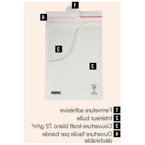 En kraft blanc 70 g/m² intérieur bulle.