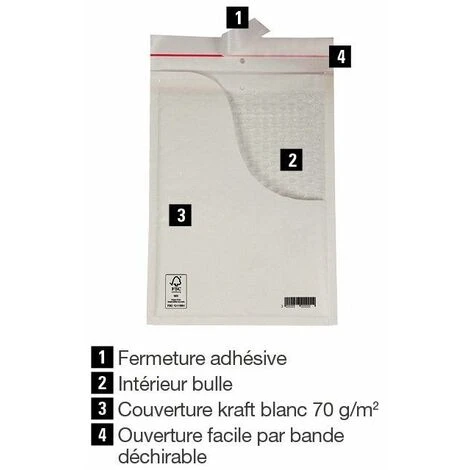En kraft blanc 70 g/m² intérieur bulle.