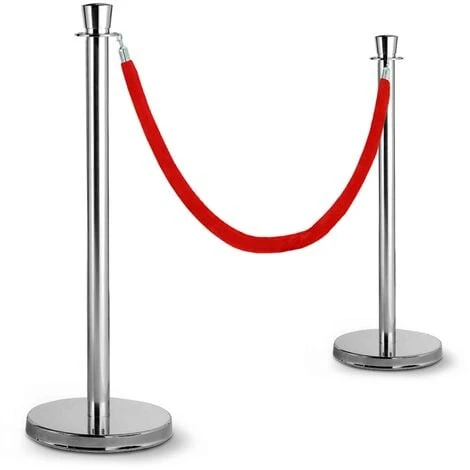Pack de 2 poteaux de guidage et d’un cordon séparateur en velour rouge pour contrôle de foule. Aménagez votre événement ou votre commerce avec ces poteaux de guidage chromés afin de sécuriser et contrôler vos files d’attentes. Élégants et intemporels ces poteaux de balisage seront l’élément idéal pour créer des files d’attentes. Chaque potelet dispose d’une base de 32 cm de diamètre pesant 6 kg, afin d’assurer la stabilité de votre balisage. Lot de 2 poteaux de guidage avec cordon rouge longueur 1m50 . Rapides et faciles d’installation, 3 minutes suffisent pour organiser et délimiter votre zone de file d’attente. Équipés d’un socle en ciment de 6 kg et de 4 encoches pour les cordons, les poteaux sont spécialement conçus pour le guidage des foules. Les poteaux de guidage Chromé peuvent être utilisés en intérieur comme en extérieur. De qualité professionnelle, Ils seront parfaits pour l’organisation de vos événements et permettront d’éviter tout risque de débordements en zone d’attente.