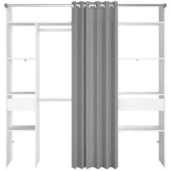 EKIPA Dressing Avec Rideau – 2 Tiroirs Et 2 Colonnes – Décor Blanc – L 198 X P 40 X H 203 Cm – ARTIC