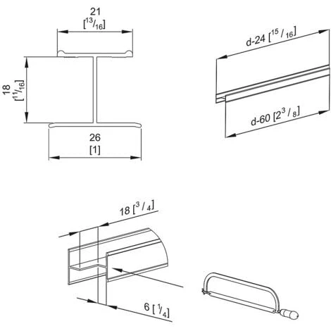Profil en H pour porte 18 mm – L = 1800 mm – couleur argent.