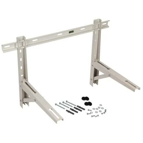 Support mural à l’unité pour climatisation ou pompe à chaleur (PAC). Faciles à déplier et à monter, ces supports sont traités anti-corrosion avec une finition électrio-zingué et recouverts d’une peinture époxy beige. Ils sont livrés dans un emballage individuel avec supports anti-vibrations et visserie. Le niveau intégré sur la barre transversale permet une installation simple et rapide. Gain de place pour le transport et le stockage. Poids maxi 250 Kg – L. 650mm Dimensions: P 650 x H 530 x L 900 mm Support mural pour groupe extérieur Support mural clim Support mural climatisation Support climatisation