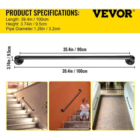 - 【INSTALLATION SANS EFFORT】 – Diametre du pre-trou : 6 mm ; Largeur demarquant du mur : 95 mm. Les mains courantes murales pour escaliers sont rapides a installer en enfilant chaque partie et en installant le mur. Veuillez mesurer precisement la longueur de la main courante dont vous avez besoin avant linstallation.