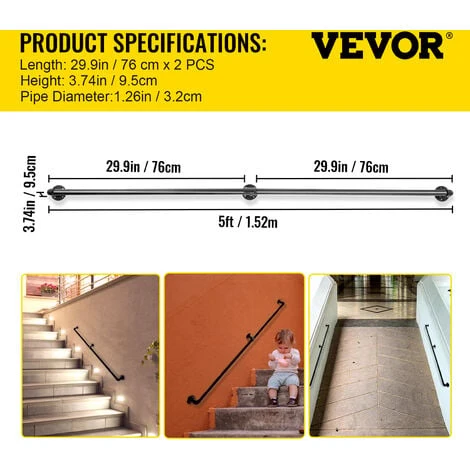 - 【ESCALIER SECURISE HAUT/BAS】- Diametre du tube : 32 mm ; Epaisseur du tube : 1,5 mm ; Longueur de chaque tube : 76 cm ; Quantite : 2 tubes ; Longueur totale : 1,52 m. La main courante deescalier de tuyau robuste peut supporter 200 kg de charge de chaque support. Par consequent, elle peut etre utilisee comme une barre deappui pour monter et descendre les escaliers, en particulier pour les enfants, les personnes agees, les femmes enceintes et les personnes ayant des difficultes a monter les escaliers.