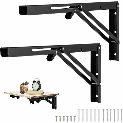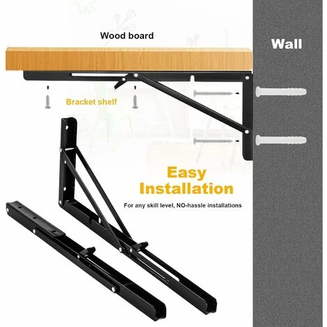 Vous pouvez construire un support d’étagère pliable ou un petit bureau pliant mural pour votre maison ou votre garage. - 【Taille et emballage】Support Console Pliable noir Equerre de 40 x 17 cm (16 x 6,7 pouces), complet avec accessoires de montage, vis en acier inoxydable de haute qualité et chevilles murales de haute qualité, vous n’avez donc pas besoin d’acheter d’autre